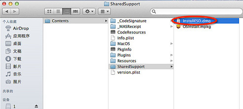 在“Contents”文件夹中进入“SharedSupport”文件夹并找到“InstallESO.dmg”文件。
