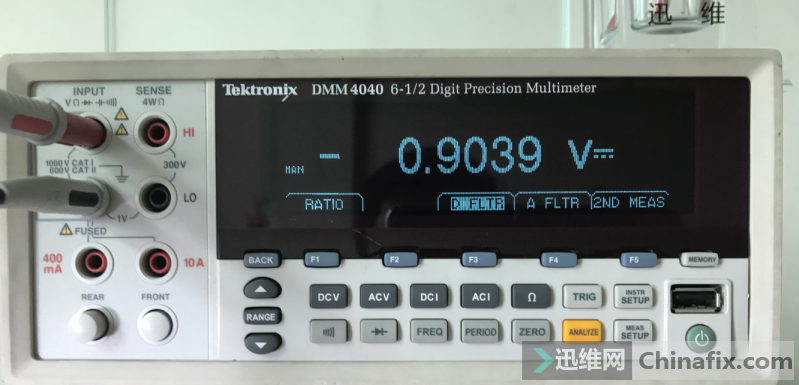 修到这里算是把待机3 5V修好了,下一步就轮到把桥装上去了,桥还是用客户原来的桥,装上后待机电流0.026A算正常,没装桥前32.768是不起振的,装上后测量标准的32.768KHz出来了。